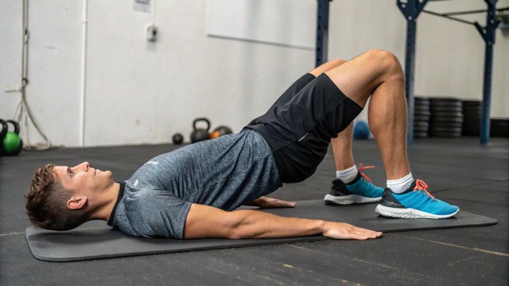 - Glute Bridge Holds – 10 seconds x 3 rounds