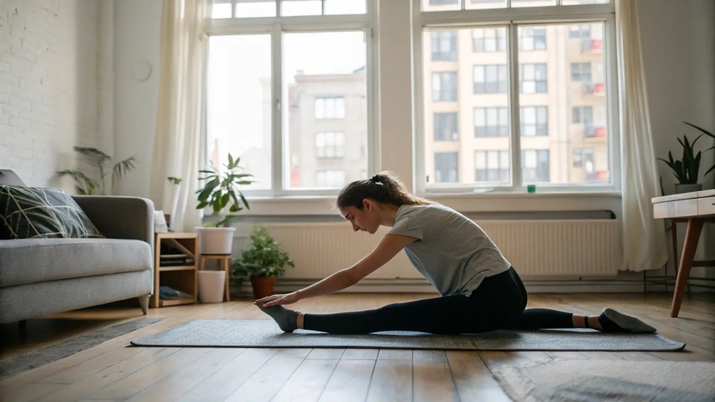 If you plan to lie down for exercises like glute bridges or banded dead bugs, you’ll need floor space roughly the size of a twin mattress. If your space is tight, pick a spot where you can move furniture around when needed. A foldable exercise mat helps too, especially if you’re working out on hardwood or tile.